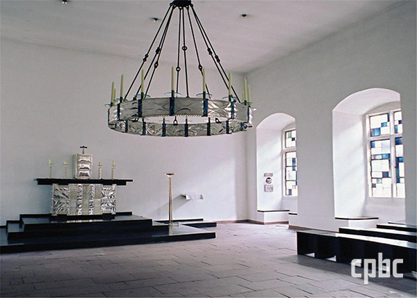전례학자 로마노 과르디니 신부와 건축가 루돌프 슈바르츠 두 사람은 협력하며 소성당을 다시 설계했다. 루돌프 슈바르츠는 하얗게 마감한 벽에 고딕 리바이벌의 제대가 여전히 붙어 있었지만, 학생들은 그 주위를 반원형으로 에워싸며 모였다. ‘기사의 홀’이라는 다른 방에서는 간단히 움직일 수 있는 의자를 발굽 형으로 배치하고, 나머지 변에는 움직일 수 있는 제대를 두며, 사제는 제대 뒤에 서서 둘러싸고 있던 사람들을 마주할 수 있었다. 지금으로서는 간단히 의자 배치 정도로 보이겠지만, 이것은 전례 쇄신 운동이 공간과 함께 널리 퍼지는 계기가 되었다.