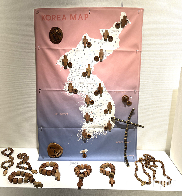 “한 신부님이 보시고 ‘이 십자가는 밑이 긴데?’ 하시더라고요(웃음). 아버지가 전문적으로 만들 생각이 아니었으니까요. 누군가 관솔로 묵주 하면 좋겠다고 하시면 만들고, 수녀님이 성작을 얘기하시면 또 만들고. 주변의 관심과 요청으로 만들다 보니 지금에 이른 거예요. 최근에는 한 수녀님이 물고기 두 마리를 헝겊으로 만들어 오셨는데, 그걸 보고 작업하시기에 제가 ‘오병이어’라고 이름을 붙였죠(웃음). 밀알도 있고, 전국 지도에 15처도 만들었어요.”