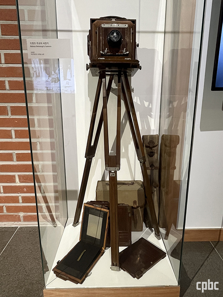 카메라와 수많은 사진도 눈에 띈다. 드망즈 주교의 주름상자식 사진기와 주교가 직접 촬영한 사진들이다. 1906년 창간한 경향신문을 담당했던 주교는 신문에 글과 함께 삽화를 넣었고, 매일의 생활도 글과 사진으로 기록했는데, 그 사진만 800여 장에 달한다. 주교는 언어가 다른 세계인에게 번역이 필요없는 65장의 사진을 통해 조선을 소개하고자 했다. 한반도의 자연풍광을 비롯해 농경과 수공업 현장, 놀이문화, 성당과 공소, 선조들의 모습이 고스란히 담겨 있다.