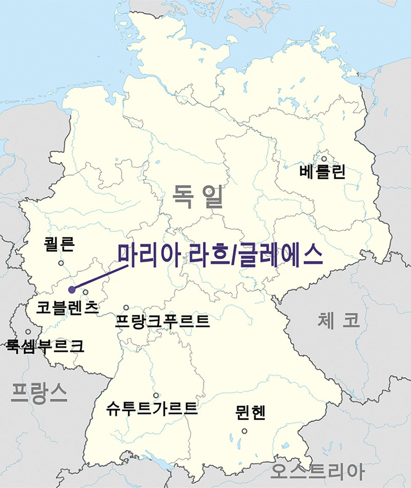 ※ 코블렌츠에서 자동차로 30분(20㎞). 열차 이용은 안데르나흐 역에서 하차(15분 소요) 후 지역 버스 이용(No.395, 수도원 주차장 하차)