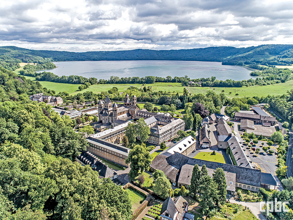이곳은 알프스 이북에서 보기 드문 화산지대로 고대 화산 활동으로 형성된 아이펠(Eifel) 고원이 넓게 펼쳐져 있지요. 수십 개의 둥근 화산호와 작은 분화구 언덕이 흩어져 있어 제주도의 오름을 연상시킵니다. 차이점은 우리 원형 분화구는 물이 차있지 않은 건식이라는 점이겠죠. 이곳 화산호 중 둘레 약 8㎞에 달하는 라흐 호수가 있는데 독일 최대 칼데라호입니다. 그 호숫가에 오늘 가볼 천 년의 마리아 라흐 베네딕도회 수도원이 자리하고 있습니다. ‘라흐(Laach)’가 ‘호수’란 뜻이니 호숫가 성모님의 수도원인 셈이죠.