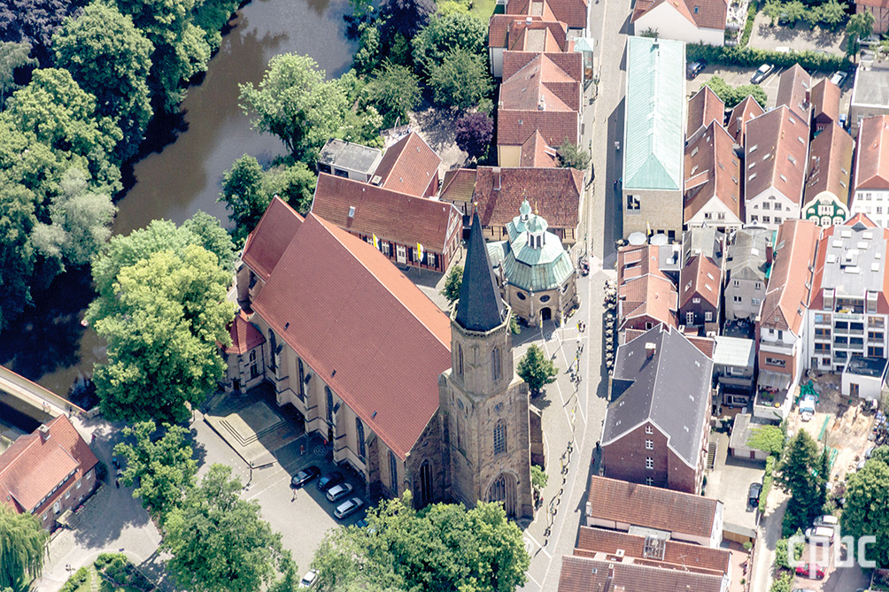 텔크테는 뮌스터에서 얼마 떨어지지 않은 인구 2만 명이 사는 작은 도시입니다. 뮌스터 중앙역에서 기차를 타면 바로 다음 역이 텔크테역입니다. 역에서 나와 도심으로 10여 분 걸으면 팔각형의 은총 소성당과 엠스강가에 첨탑이 우뚝 솟은 텔크테 본당의 성 클레멘스 성당이 눈앞에 나타납니다.
