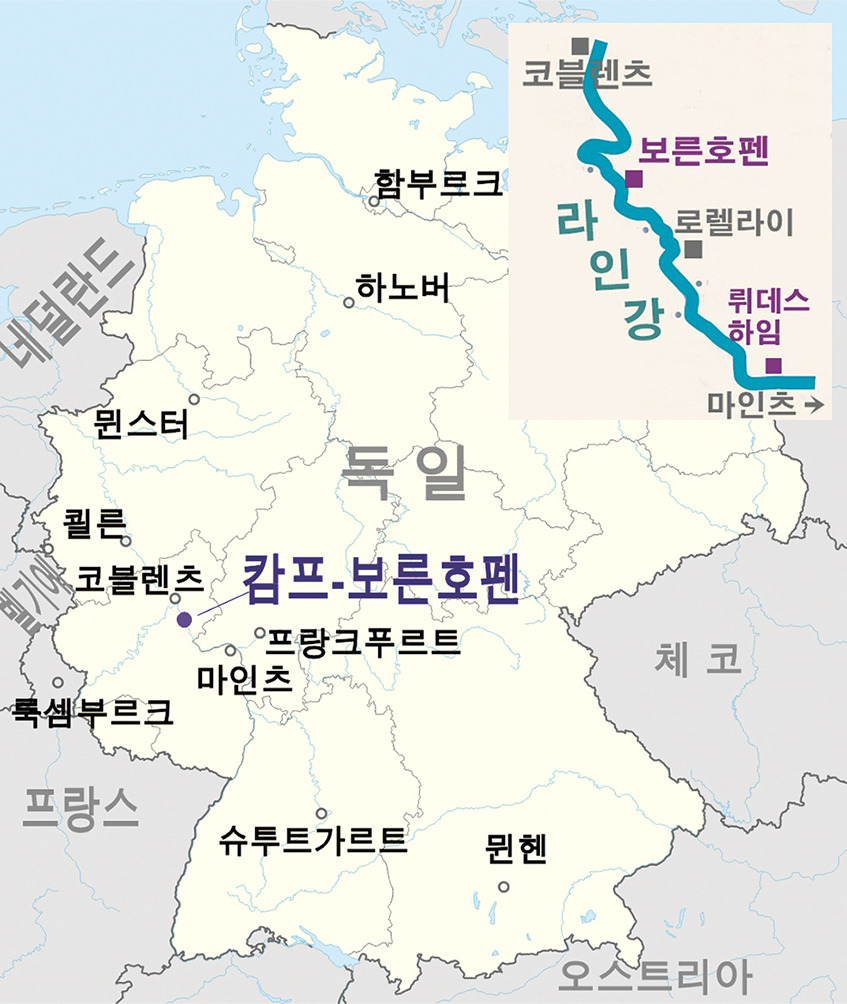 쾰른대성당의 동방 박사 성해(聖骸)·트리어 대성당의 주님 성의(聖衣) 등 라인강과 지류의 여러 성지도 순례자의 목적지가 되었죠. 유네스코(UNESCO) 세계문화유산으로 지정된 중부 라인강 상류 계곡의 보른호펜 수도원도 그런 장소 중 하나였습니다.