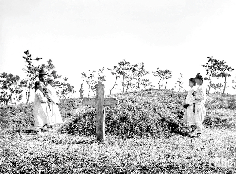 상트 오틸리엔 수도원 소장 한국 사진 아카이브에는 교우들이 천주교 묘역에서 이 세상을 떠난 모든 이들을 위해 위령 기도를 바치는 사진이 다수 있다. 그중 한 장이 1924년 이후 촬영된 것으로 추정되는 북만주 팔도구 천주교 묘역 연도 사진이다.<사진 2> 사진은 최 마티아의 영원한 안식을 위해 가족들이 무덤 앞에서 위령 기도를 하고 있는 모습이다. 상복을 입은 이가 없는 것으로 보아 가족과 친지들이 아마도 죽은 이의 기일이나 추석 명절에 묘소를 찾아 기도하고 있는 듯하다.