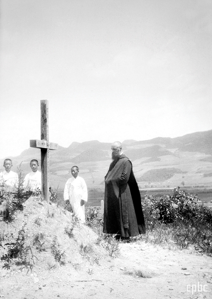 레오나르도 베버 신부의 무덤 앞에서 한 독일인 선교사가 기도하고 있다.<사진 4> 베버 신부는 1924년 3월 25일 34살의 젊은 나이에 선종했다. 그는 1921년 한국에 파견되어 덕원 신학교 지도 신부와 함경남도 내평본당 주임으로 사목했다. 그는 열악한 북간도 지역 선교를 자청해 팔도구에 왔고 얼마 되지 않아 공소 방문 중 쓰러졌다. 사인은 ‘발진티푸스’였다. 팔도구 교우들은 쓰러진 베버 신부를 살리겠다고 담요만 깔린 소달구지에 태워 겨울 삭풍을 뚫고 9시간이나 걸려 용정에 갔으나 손쓸 길이 없었다.