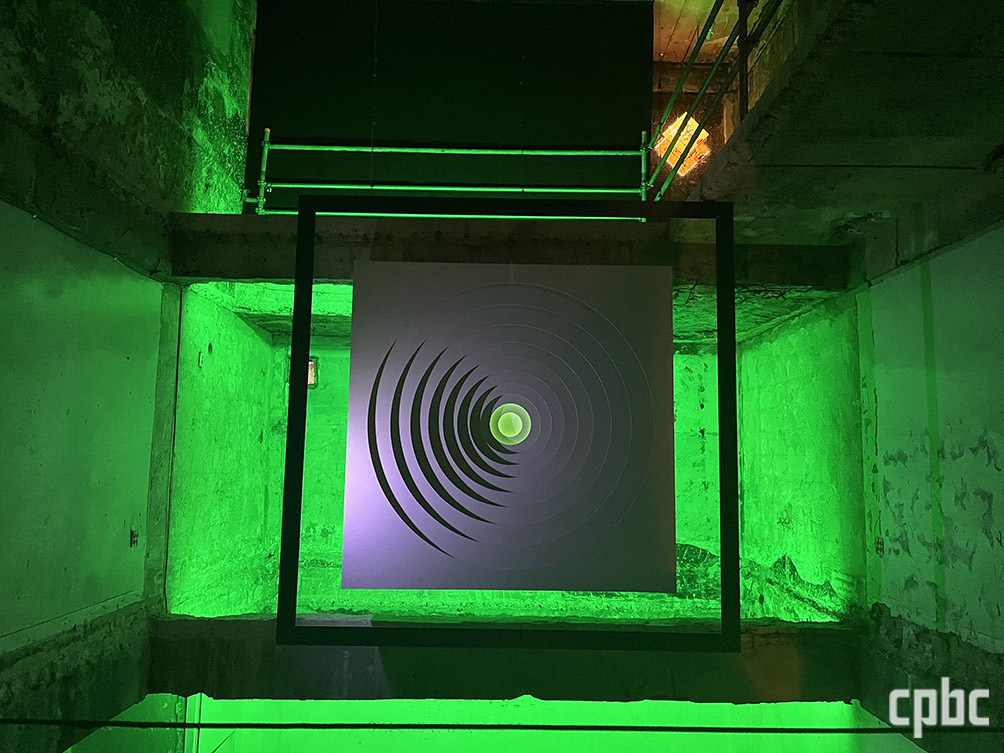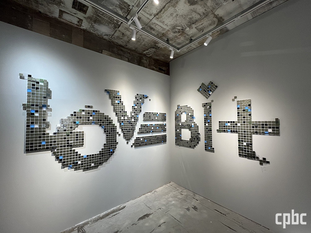 과거 목욕탕으로 사용하던 건물 골조와 투박함이 그대로 유지된 공간에서의 전시는 빛과 어둠, 디지털과 아날로그의 대비가 더욱 선명하다. △빛의 회상에서는 메소포타미아 시대부터 지금껏 동서양이 활용하고 있는 ‘물레’에 대한 오마주를 디지털로 표현했고, △빛의 리듬에서는 디지털 이미지의 최소 단위인 픽셀과 데이터 신호의 최소 단위인 비트 개념을 전기장치 없이 태양광으로만 작동하도록 구현했다.