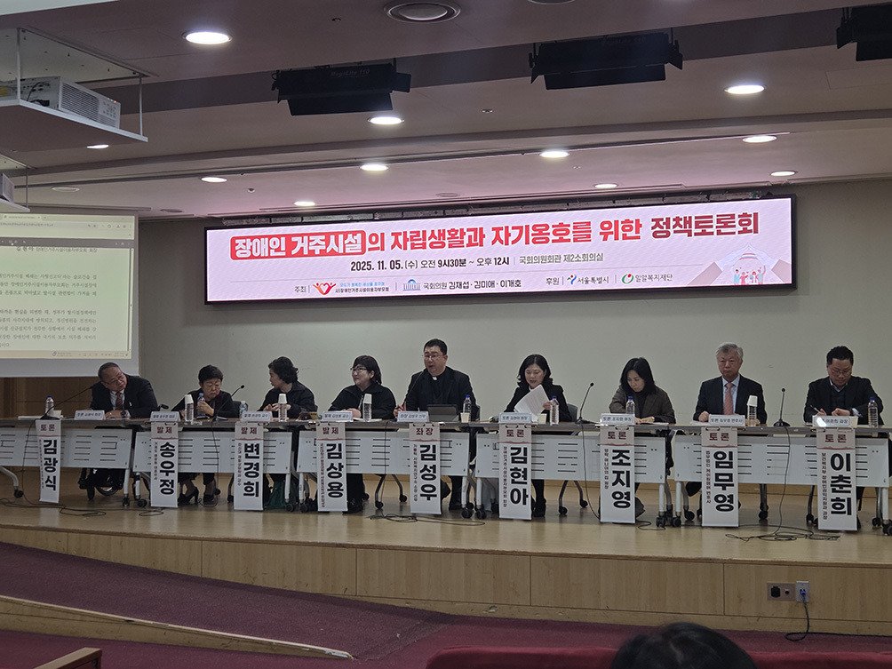 이어진 토론회는 가톨릭사회복지연구소장 김성우(청주교구) 신부가 좌장을 맡았다. 김 신부는 “장애인 거주시설 안에서 자립에 대한 주제를 논의하는 아주 소중한 기회라고 생각한다”고 말했다.