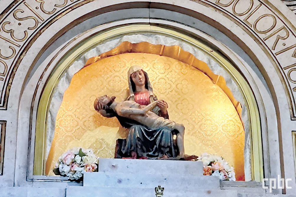 특히 은총 소성당의 둥근 돔 천장에는 금빛과 청색이 교차하는 기하학 문양의 천장화가 펼쳐져 있고, 그 중앙에는 ‘천상의 예루살렘’을 상징하는 삼위일체의 원이 그려져 있습니다. 제단의 목조 성모자상은 아기 예수를 조용히 감싸 안고 정면을 응시하는데, 표정과 몸짓에서 감정을 철저히 절제한 형태로 표현되어 있습니다.