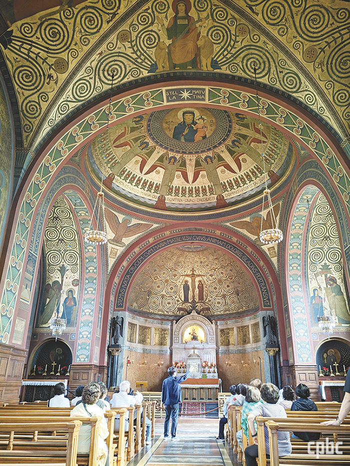 렌츠와 뷔르거는 감상적 사실주의로 흐르던 교회 미술 대신 고대 이집트·그리스·비잔틴 미술의 비례와 상징 질서를 되살리려 했습니다. 그래서 성당의 벽화와 모자이크·스테인드글라스를 그 기준에 따라 설계했지요. 색을 제한적으로 사용한 이유도 감정 표현보다 질서와 침묵의 균형을 드러내려 했기 때문입니다. 이는 성당의 장식이 기도의 배경이 되어야 한다는 신념에서 비롯된 것입니다.