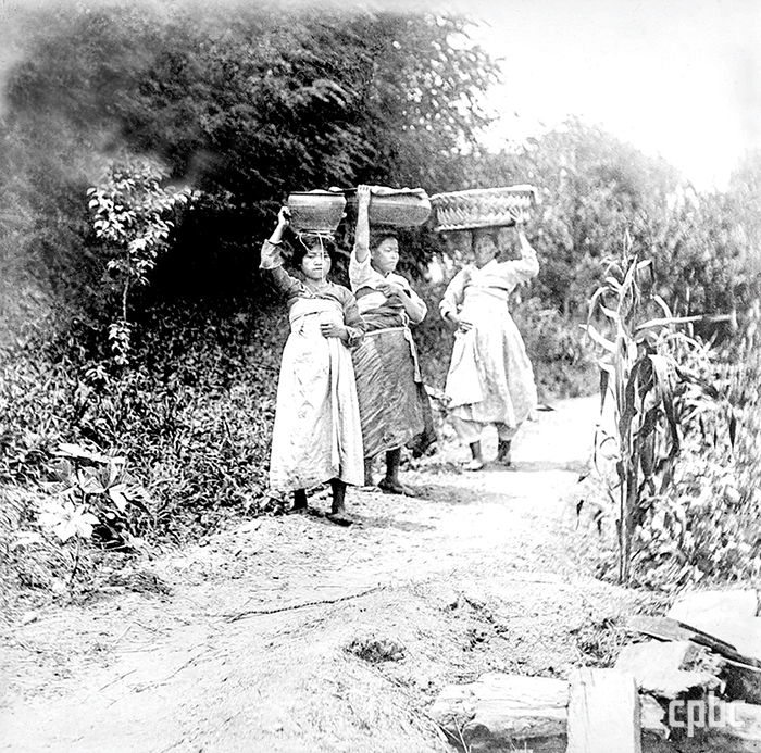 <사진 1> 노르베르트 베버, ‘머리에 짐을 인 여인들’, 유리건판, 1911, 국외소재문화유산재단, 독일 상트 오틸리엔 수도원 아카이브 소장 한국 사진.