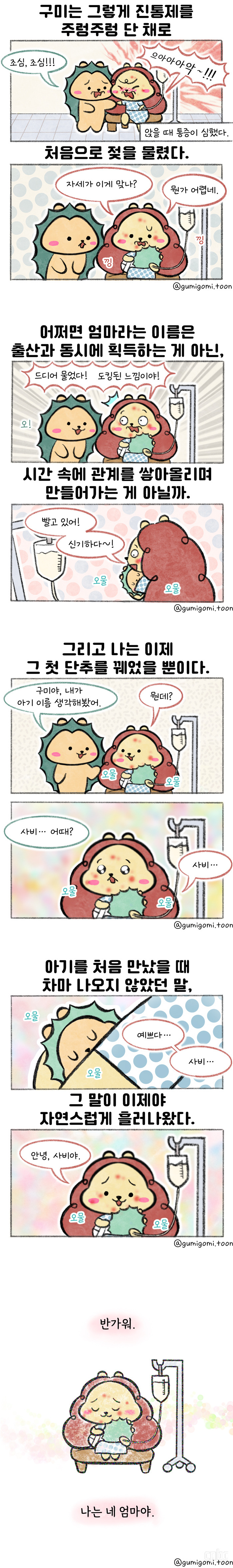 ※ 1년여 동안 세상 무해한 고슴도치 커플의 결혼 장려툰 ‘구미와고미’를 연재해주신 유현지(프란치스카)님과 애독해주신 독자 여러분께 감사드립니다.