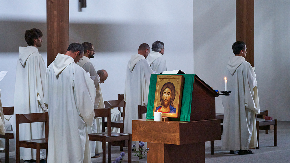 보세 수도원의 특징은 서로 다른 교파의 남녀 그리스도인들이 함께 수도 생활을 한다는 것이다. 남자 수도자들이 시간 전례를 하고 있다.