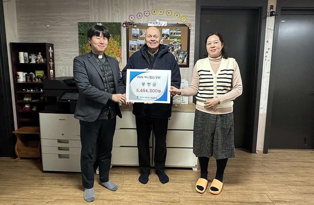 수원교구 복음화국은 14일 ‘카나혼인강좌’ 교육에 참가한 예비부부들이 봉헌한 헌금 560여만 원을 남자 아동과 청소년이 함께 생활하는 ‘성 요한의 집’에 전달했다.