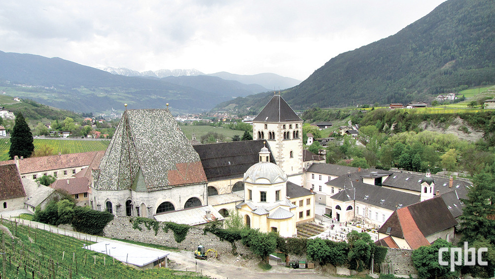 노이슈티프트 수도원은 ‘새로운 수도원’이란 뜻으로, 1142년에 브레사노네의 하르트만 주교가 설립했습니다. 알프스 산맥을 통과하는 브레너 고개의 남쪽 계곡 초입, 이탈리아 북부 브레사노네에서 차로 10분 남짓한 거리에 있습니다. 국도 안내판에는 노이슈티프트·노바첼라라고 독일어·이탈리아어 지명이 함께 쓰여 있는 걸 보게 되는데요, 이곳이 속한 티롤 지역이 오랫동안 독일어 문화권에 속해 있어서 독일어가 더 친숙한 곳이기 때문입니다.