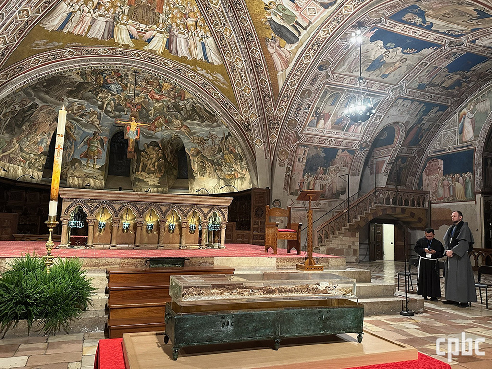 이탈리아 아시시 성 프란치스코 대성전 내에 공개된 성 프란치스코의 유해. OSV