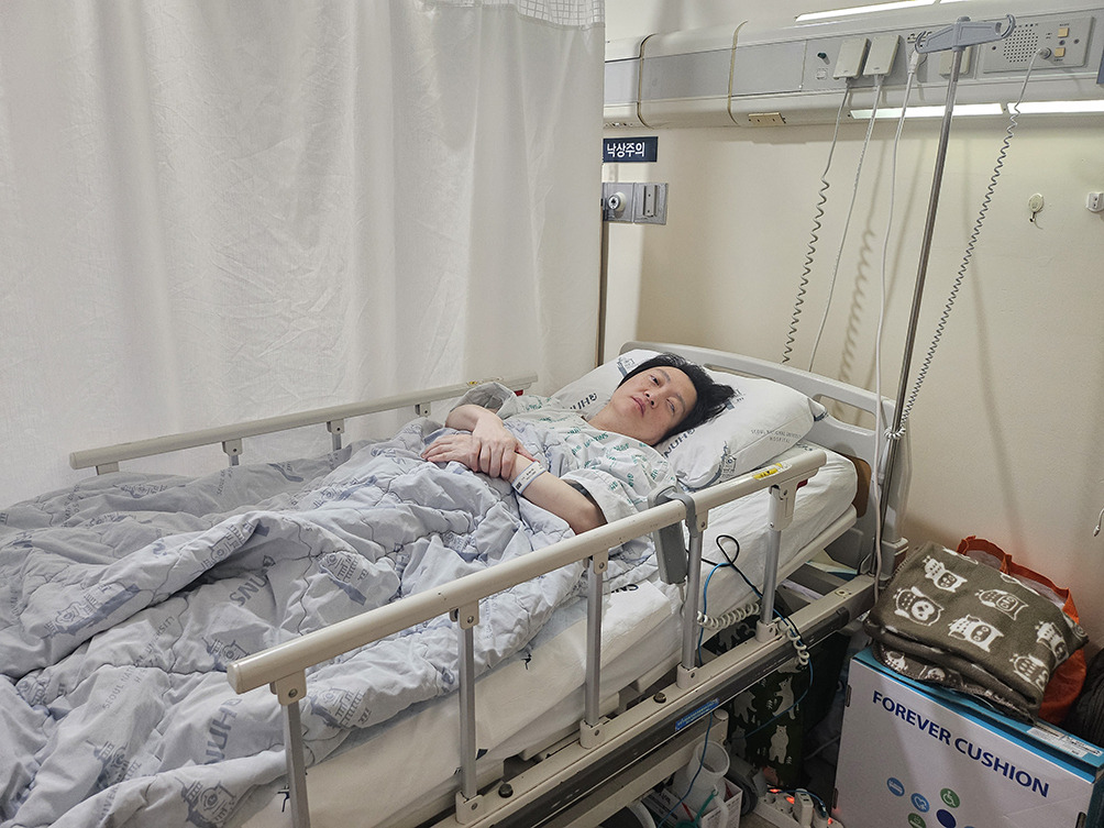 퇴원하고 나면 집에 의료 침대, 이동 보조 기구, 욕창 방지 매트 등 갖춰야 할 게 한두가지가 아니라 막막한 상황이다. “예상했던 것보다 돈이 많이 들어 걱정”이라며 고개를 떨궜다. 누워 있는 최씨의 왼쪽 눈은 하얀 막으로 덮여 있었다. 여섯 살 때 동네 형이 휘두르는 꼬챙이에 찔려 실명했고, 이후 한쪽 눈으로만 살아왔다.