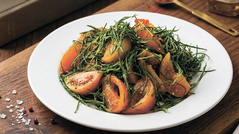 염분이 키워낸 맛, 세발나물과 대저 토마토로 한국식 샐러드를 만들어 보았다. 둘 다 짠맛이 있으니 간은 최소한으로 하고 고춧가루와 들기름을 넣어 가볍게 버무렸다. 이 샐러드를 맛본 친구들이 모두 엄지를 치켜세웠다. 봄이 시작되는 3월이면 늘 이 요리를 만들어 주변과 나눈다. 그대로 샐러드로 먹어도 좋고, 바게트 위에 올려 샌드위치로 즐겨도 잘 어울린다. 만드는 방법도 간단하니, 영양은 풍부하고 부담은 적은 세발나물로 봄 식탁을 차려보자.