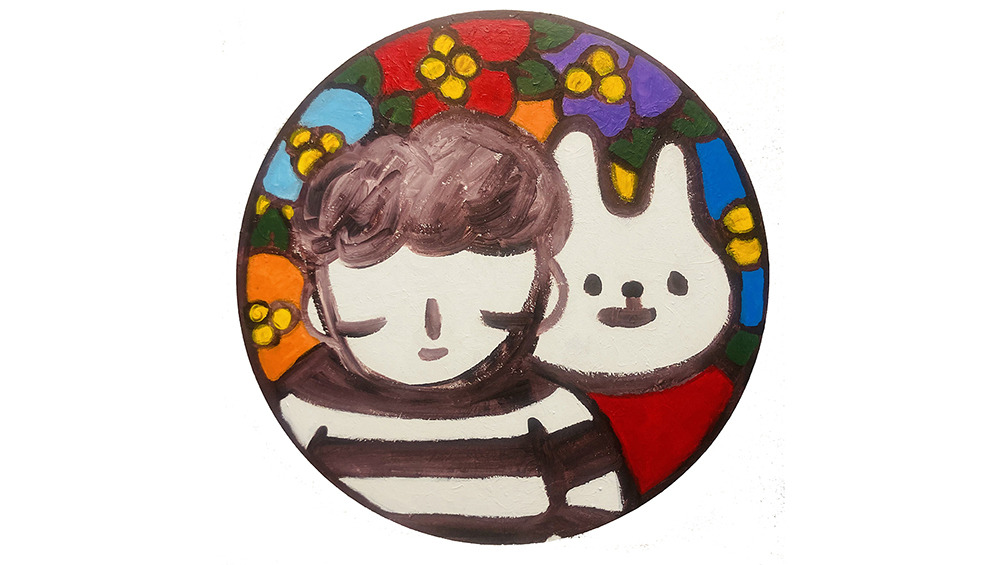 작가는 ‘위로’를 담기 위해 개인이 일상에서 마주하는 사람과 사물, 친숙하고 조용한 관계에 집중했다. 이번 전시에 상당수를 차지하는 동물 캐릭터 역시 관계 그 자체를 상징한다. 서로를 향하거나 기대는 형상들은 구체적인 서사 없이도 ‘함께 있는 상태’를 드러내며, 이미지들 사이의 간격과 배치 속에서 지속 가능한 관계의 구조로 표현된다.